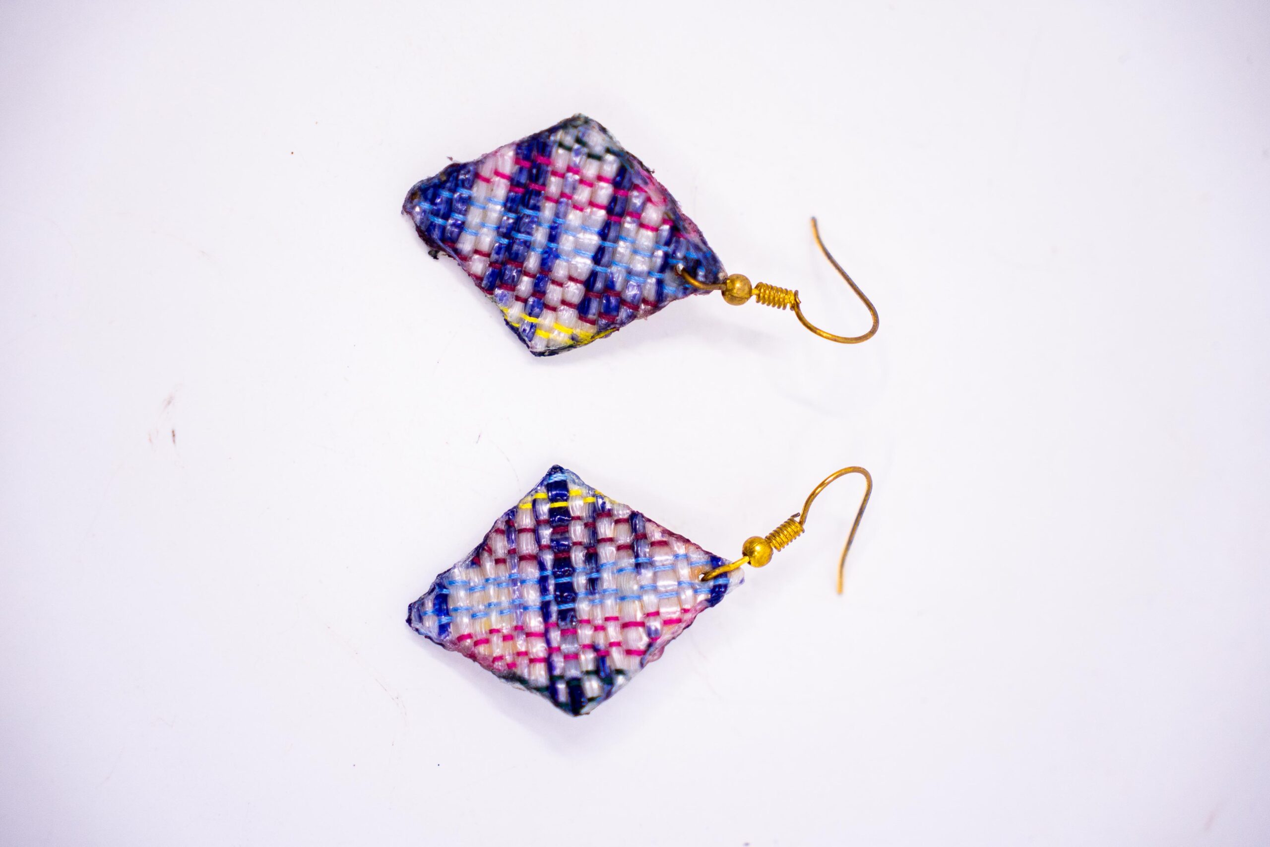 Earrings made of 90% upcycled nylon with 10% metal hooks or clasps offer a delightful blend of lightweight, eco-friendly style and practical durability